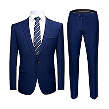 (2 Piece) Office Set B Formal Dress Double-Breasted Blue StripesBlack