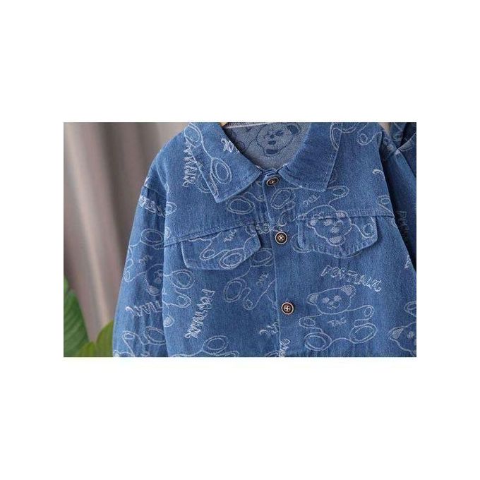 0-4 Year Old cotton Jacquard Denim Set For Boys, Long Sleeved Top+long Pants Two-piece Set