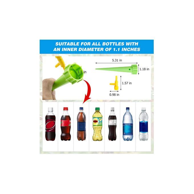 Plant waterer self watering system: plant watering stakes made of ABS plastic material, durable and sturdy means that each water spike has a working life of more than a year, and our water spikes are more durable than other water spikesAdjustable switch: it can be adjusted to provide appropriate water according to different plant needs, can control the velocity of flow, so you don’t have to worry about the water being too fast or the hole being blockedAttention please: our spikes are suitable for the bottles of 1.1 inch inner diameter, spring water bottles do not fit, and please cut the ring of bottle lid to prevent leaking, to avoid the valve sticking in the soil and loosing sight of the drip rate you can turn the valve to point UP without any problems