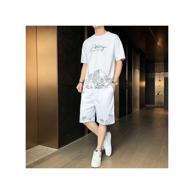 2 In 1 Men’s Short Sleeve T-shirt Shorts Casual Set-White