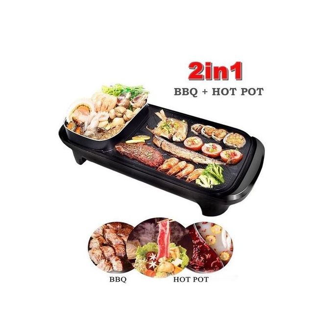 2 In1 Electric BBQ Grill Plus Hot Pot /Baking Pan