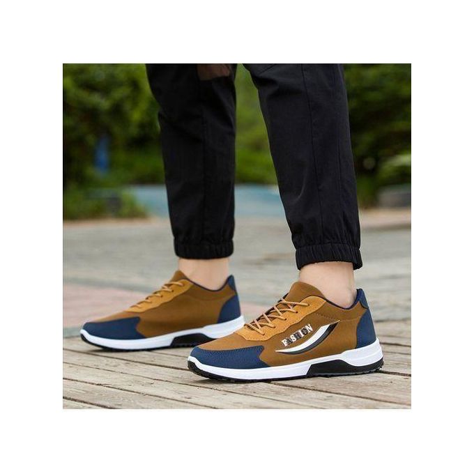 AIDAILU Men’s Breathable Sneakers Casual Shoes Non-slip Comfort Sport – Brown