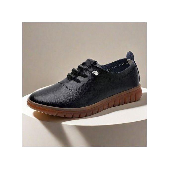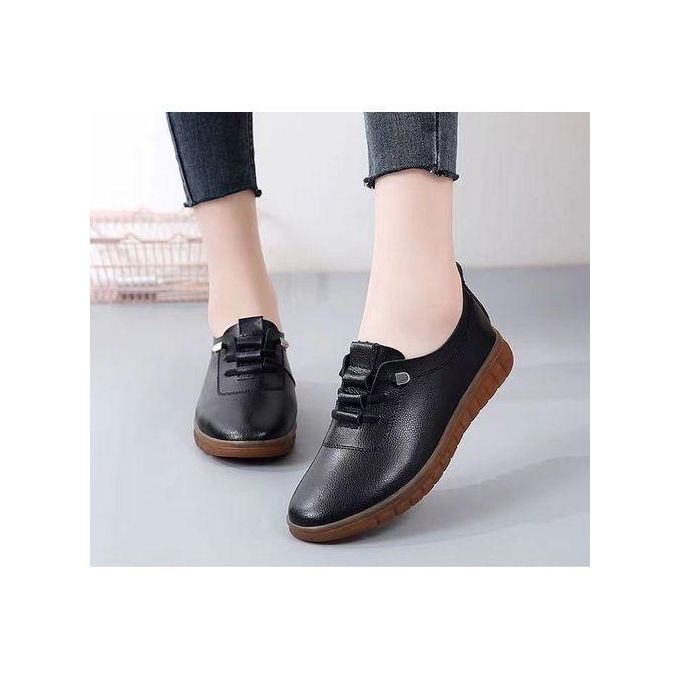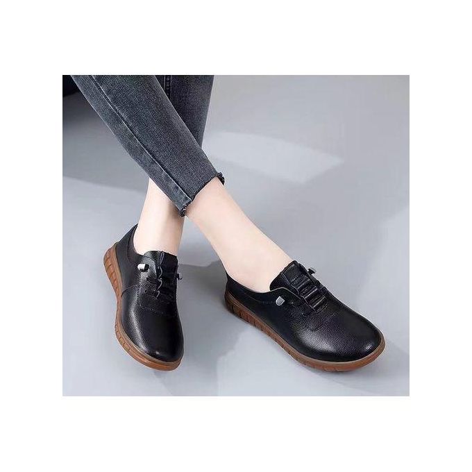 AIDAILU Women Leather Shoes For Ladies Soft Slip On Flat Shoe – Black