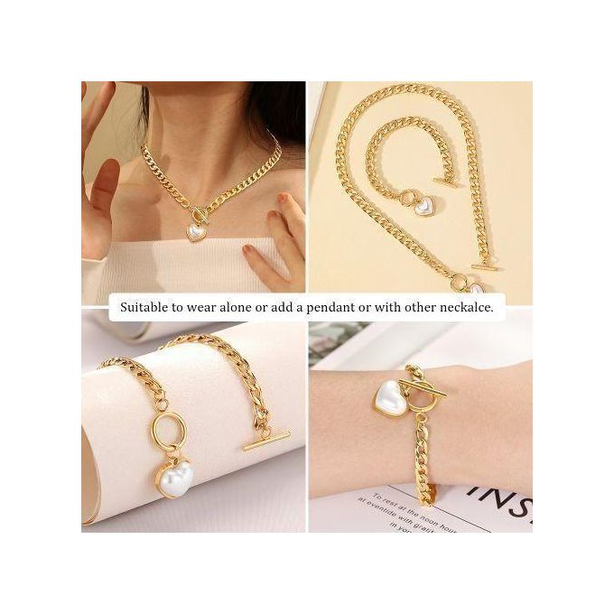 ARHANORY Ladies Necklace Bracelet Gold Jewelry Set is a stunning accessory set designed for women who appreciate elegance and versatility. This set includes a beautifully crafted necklace and bracelet, both made from high-quality alloy with a striking gold finish.