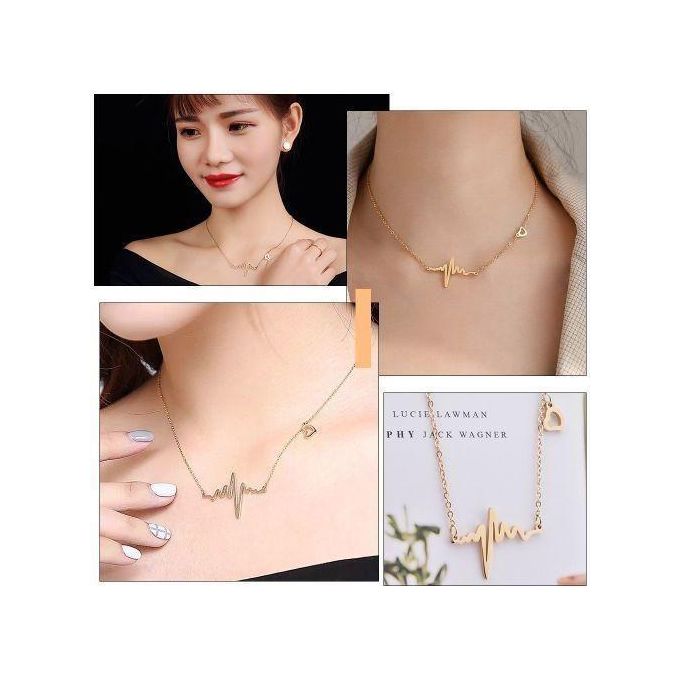 ARHANORY Women Necklace Ladies Heartbeat Rhythm Pendant Chain – Gold