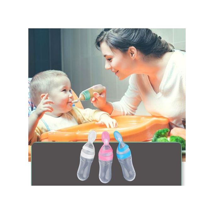 Baby Silicone Squeeze Feeding Bottle Spoon FoodCereal Feeder .