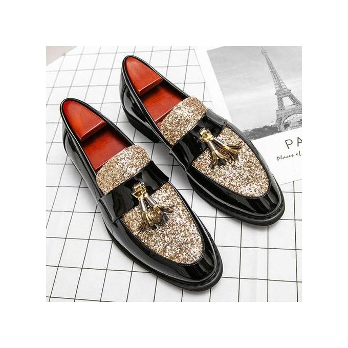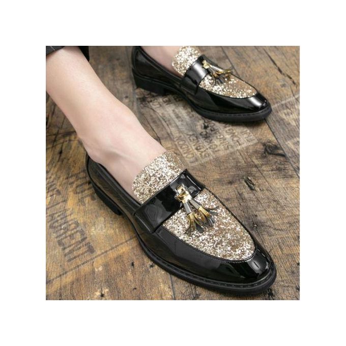 Banagat Men Glossy Casual Brogue Official Shoes Oxford Loafers & Slip-Ons Gold Black