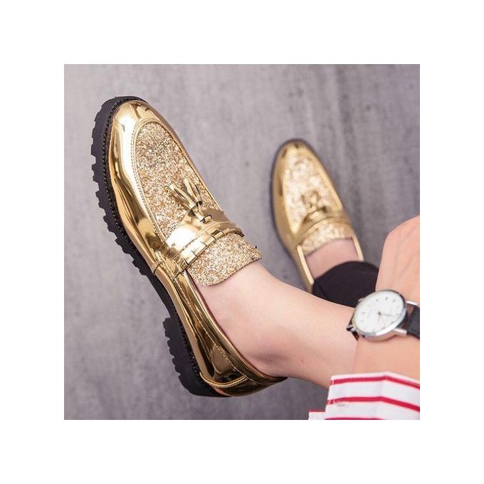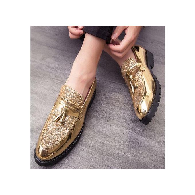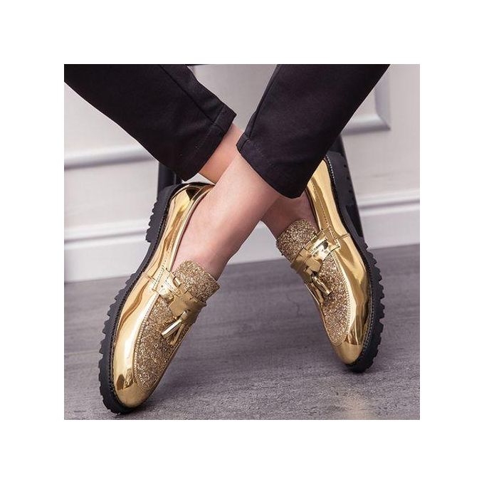 Banagat Men Glossy Formal Brogue Official Shoes Oxford Loafers & Slip-Ons Gold