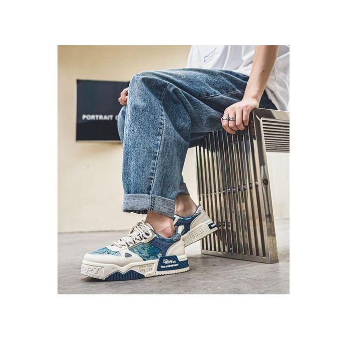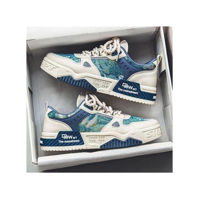 BLWOENS Men’s Casual Sneakers Lace-up Skate Shoes Comfortable Retro Fashion Sneakers-Blue/Beige
