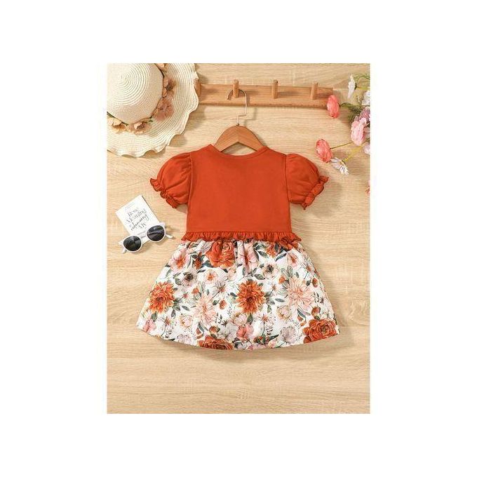 Catpapa 1-6 Years Kids Girl 2PCS Puff Sleeve Top Floral Dresses