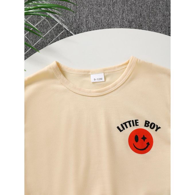 Be the first to review “Catpapa 2-Piece Summer Outfit for Baby Boys 0-3 Years – Smiley Face Print Round Neck Short-Sleeve T-Shirt & Vertical Stripe Casual Shorts” Cancel reply