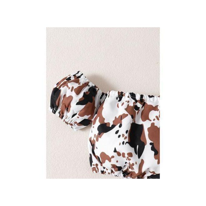 Catpapa 2PCS 0-4 Years Kid Girl Off Shoulder Bubble Sleeve Top With Corduroy Skirt