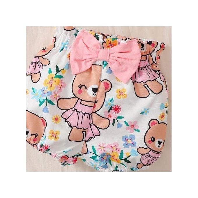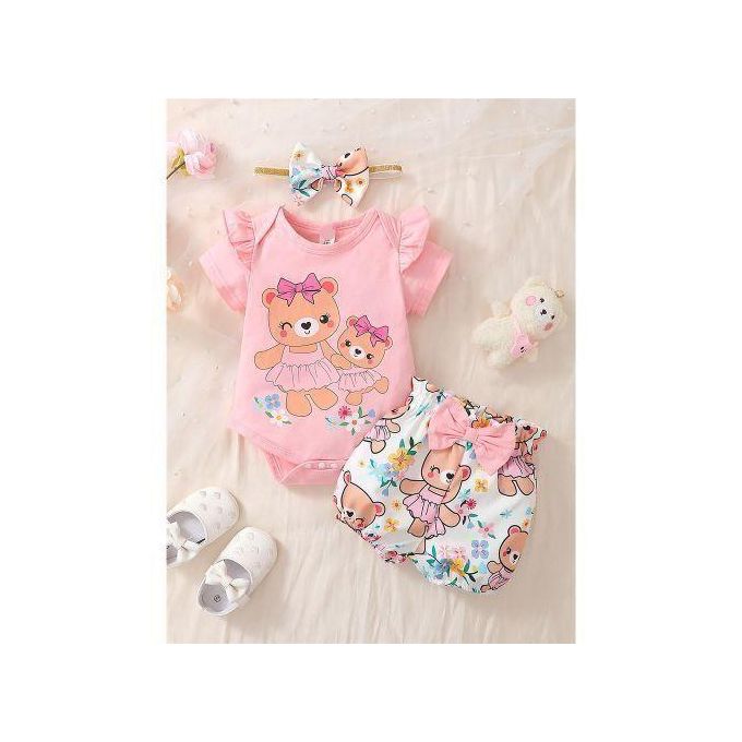 Catpapa 3-24Months Baby Girl Bear 3PCS Bodysuit Shorts With Headband
