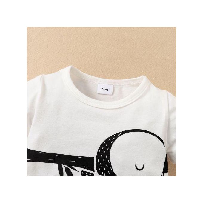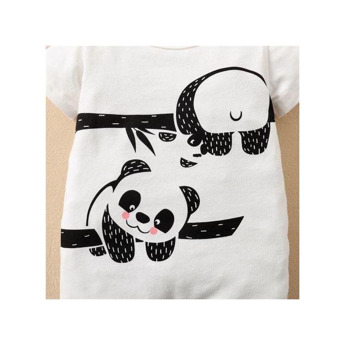 Catpapa Baby Boy Romper Panda Bear Short Sleeve Jumpsuit + Hat 2Pcs
