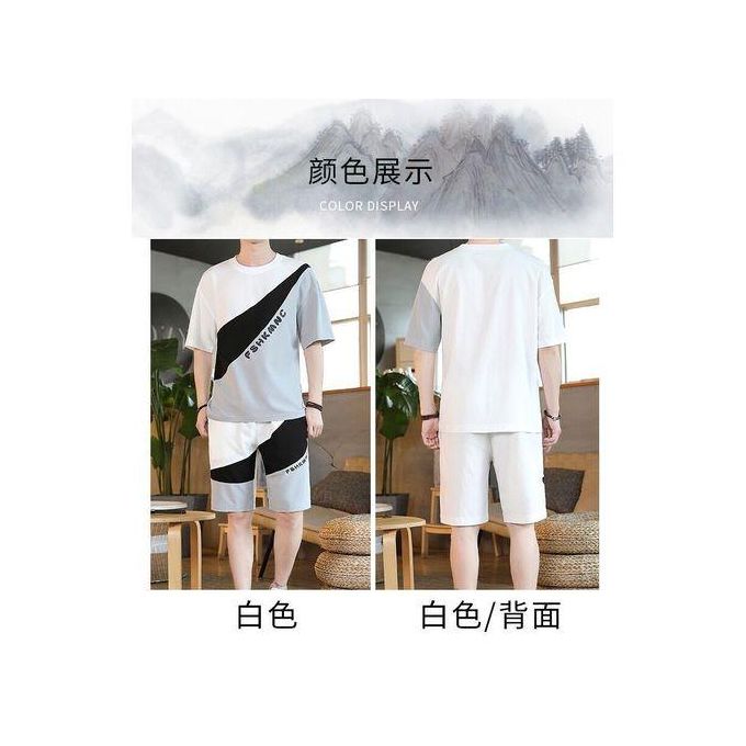 Dou-color Men’s Fashion 2-in-1 Short Sleeve&Shorts Set – Black And White