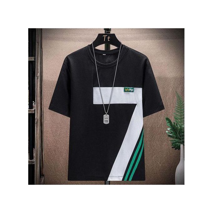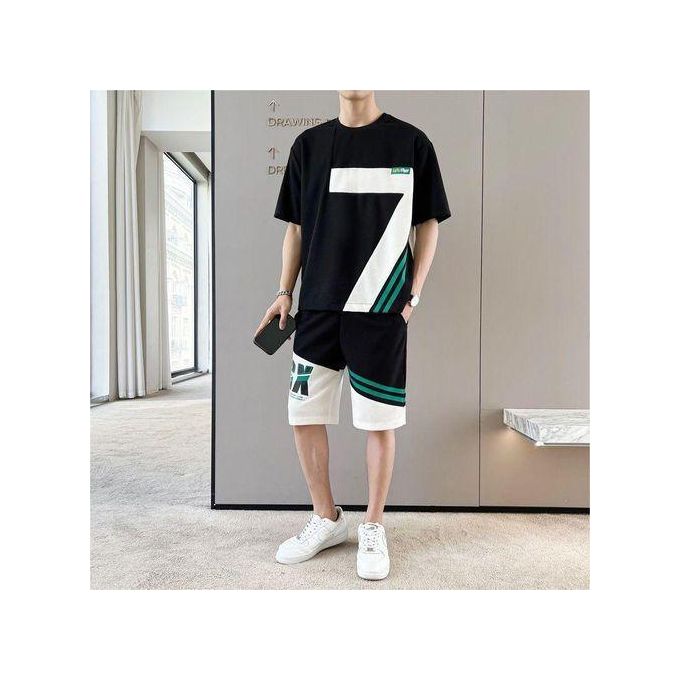 Dou-color Men’s Shorts And T-shirt Set -2 Pieces – Black