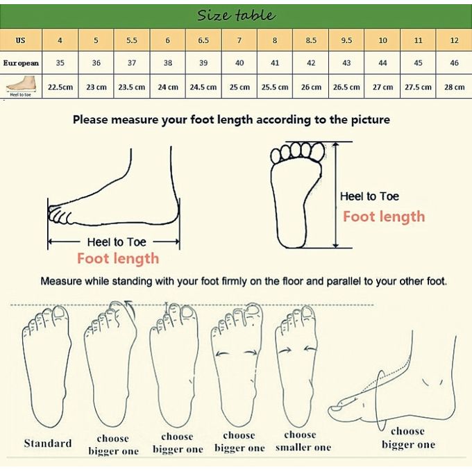 - 1. Choose the size according to your foot length (do not choose the size according to the common size in your country!)