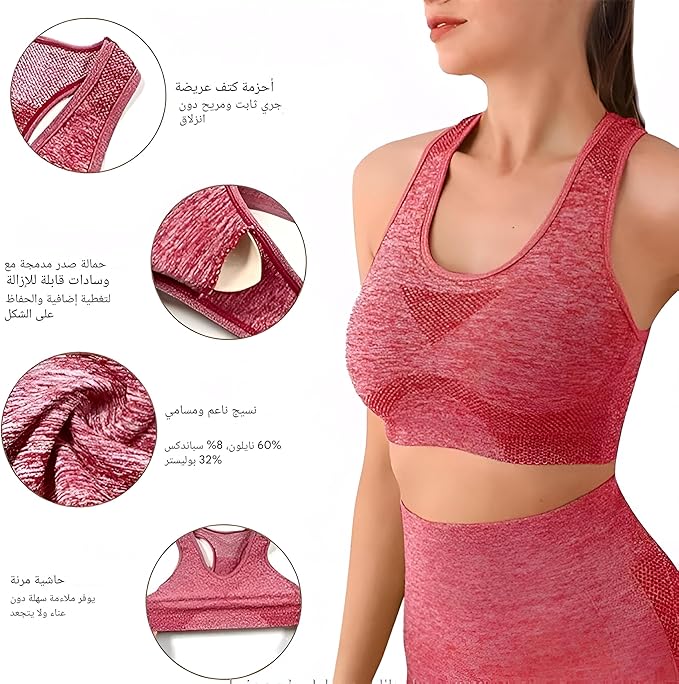 Set-kan Fitness Outfit waa labis lagu sameeyay si uu kuu siiyo isku darka ugu wanaagsan ee raaxo, dabacsanaan, iyo muuqaal qurux badan markaad jimicsiga joogto. Waxaa laga sameeyay maaddooyin si heer sare ah u neefsanaya oo aan ur celin, taas oo kuu suurtagelinaysa inaad jimicsiga ku raaxaysato adoon dareemin raaxo darro.
