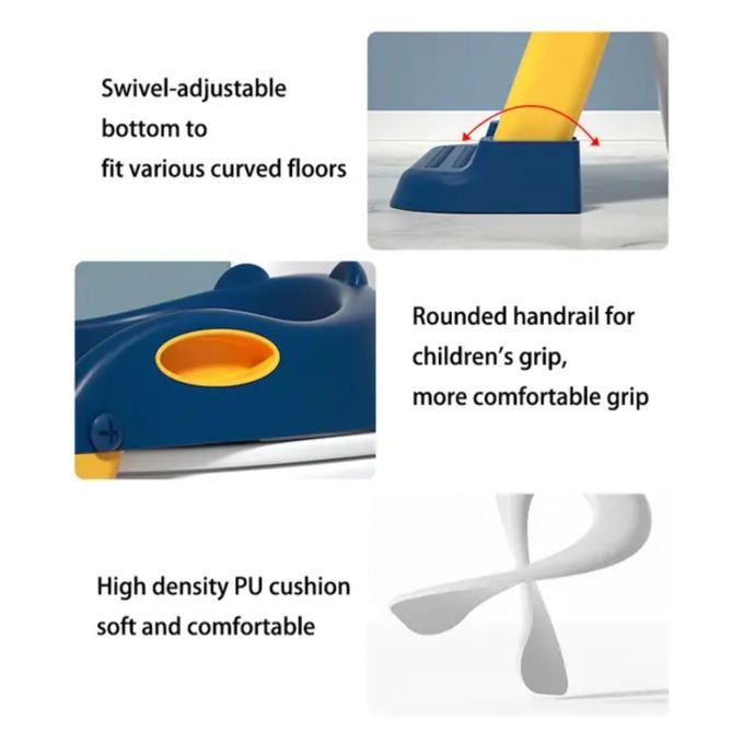FREE GIFT INSIDE. New improved portable potty ladder with hand clip For more safety and comfort. Has anti splash bump to prevent urine from failing on the floor hence your toilet stays clean all the day.day.with adjustable height suitable for different age groups. Has anti slip  pattern hence safe for yourkids.  Mskes potty training enjoyable for your kids.Order this via jumia and have it delivered to your doorstep the next day.