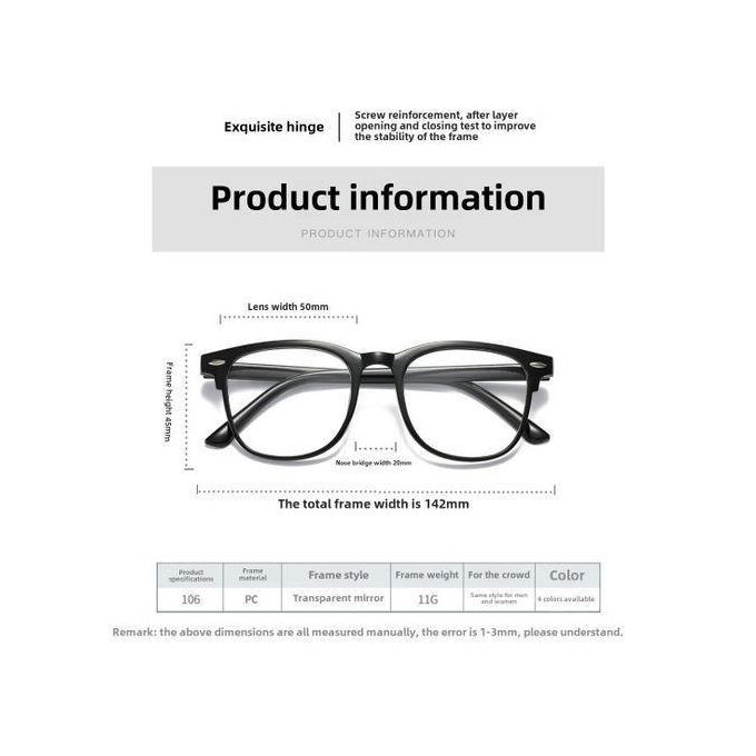 The frame of this pair of glasses features a classic black color scheme, which is mysterious and versatile, cleverly incorporating unique speckle elements to break monotony and showcase individuality. The simple and elegant square shaped design can adapt to various face shapes such as circular, square, heart-shaped, etc. Whether it is casual daily street wear or formal workplace attire, it can be easily controlled, adding a fashionable temperament to you.