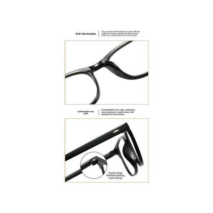 The lens is the core highlight of this pair of glasses – it has powerful anti blue light function. In today’s era where electronic devices are always in hand, blue light emitted from screens such as mobile phones, computers, and tablets can cause eye damage, leading to dryness, fatigue, soreness, and even affecting vision. The lenses of these glasses can effectively filter out most harmful blue light, establishing a protective barrier for your eyes, allowing you to reduce the stimulation of blue light on your eyes during work, study, and entertainment, and maintain a clear and comfortable visual experience.