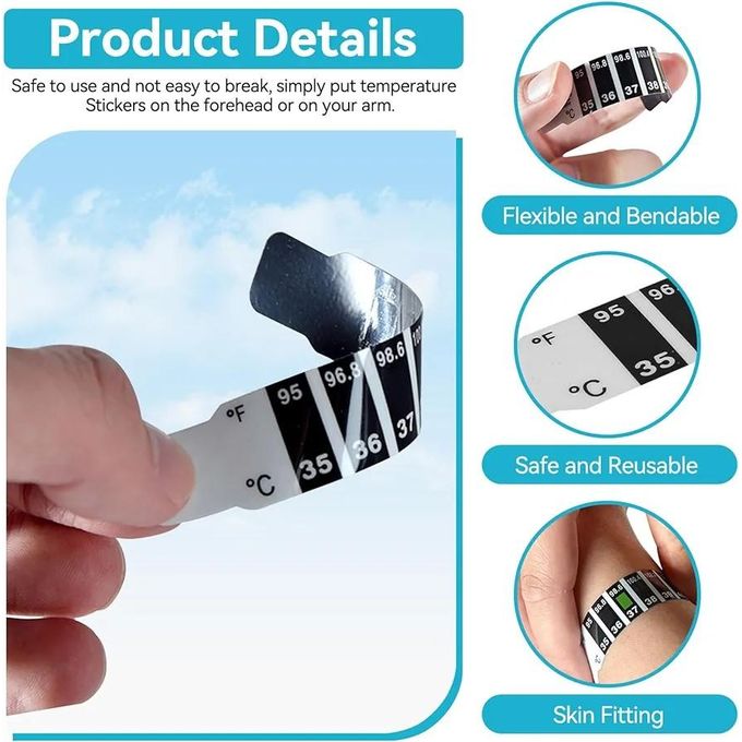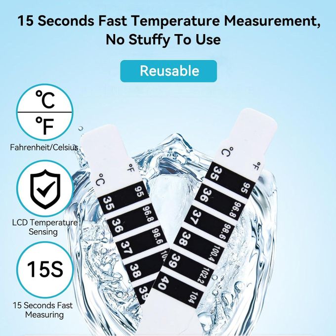 - 【Plastic material】 The forehead temperature bar adopts a waterproof design, making it easy to adhere to the surface. And high-quality materials can be used for a long time.