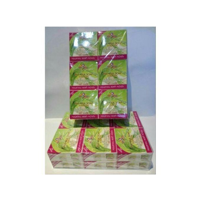Rice Milk Soap Collagen ( 1=60g ) Made In Thailand from Rice Milk 100%. This is best rated among Thailand best skincare treasures. Soft and smooth 100% acne care soap, rice milk , rich in vitamins that can help restore and upgrade. Skin whiter and brighter and more natural. It also helps to get rid of acne rashes, and freckles it also helps to soften the skin look younger and healthier.Â
