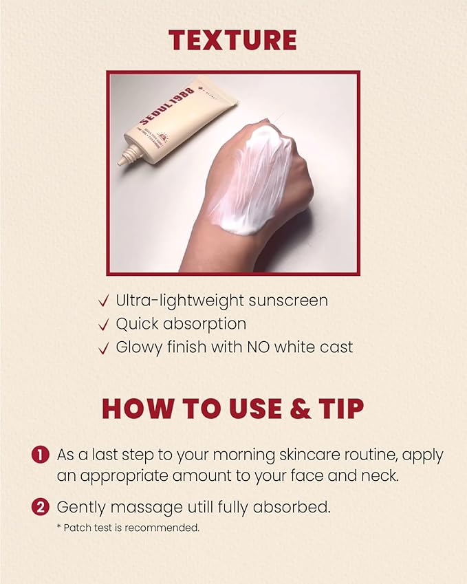 K-SECRET SEOUL 1988 Sun: Pine Tree + Ceramide waa sunscreen fudud oo maqaarka siiya ilaalin xoog leh, isla markaana ka kooban Pine Tree Extract oo dejinaya maqaarka, iyo Ceramide oo xoojiya difaaca maqaarka. Waxay leedahay texture fudud oo aan lahayn cuf ama haraaga cad, taas oo ka dhigaysa ku habboon maalin kasta.