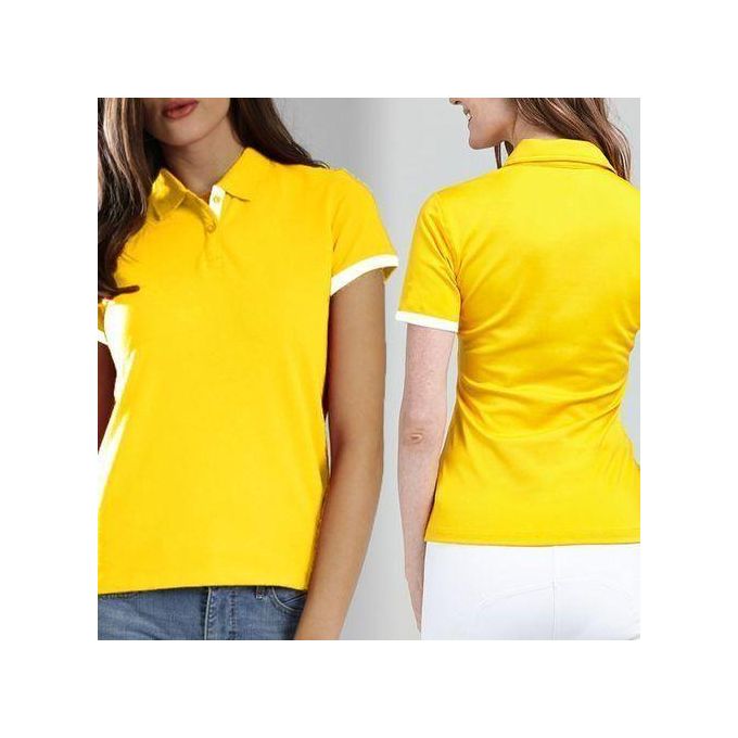 Ladies Shirt Casual Short Sleeve Polo T-Shirt Female Cloths Yellow