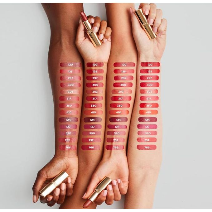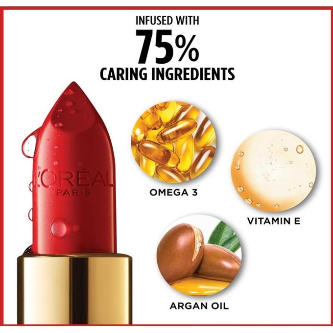 Dress your lips in the must-have, iconic Colour Riche Lipstick from L’Oréal Paris. Rich, pure colour pigments with a satin finish. The ultra-creamy formula, enriched with nourishing Omega 3 and Vitamin E, leaves lips feeling soft, smooth and hydrated. Discover the lipstick collection that includes the hottest shades for every occasion, from everyday nudes, statement plums to ideal pinks.