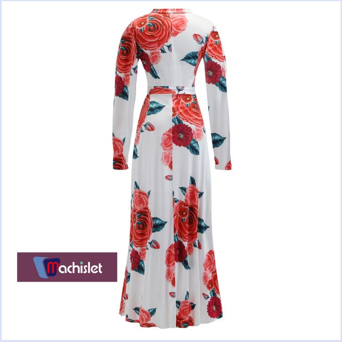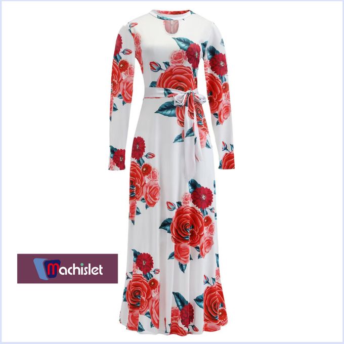 Machislet Daily Wear With Women Casual Long Dress Long-sleeved Evening Dress-WHITE