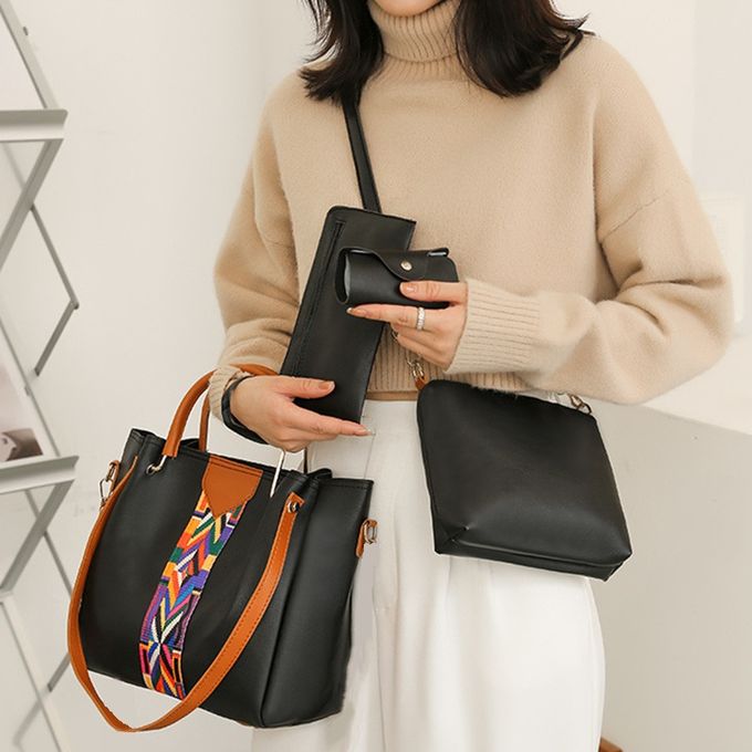 Include: 1 Main Handbag; 1 Crossbody Bag; 1 Clutch; 1 Card Bag; Only 1 strap