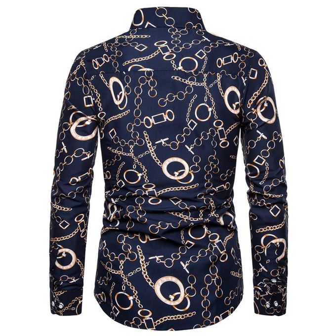 Men’s Button Casual Print Shirt Long Sleeved Shirt