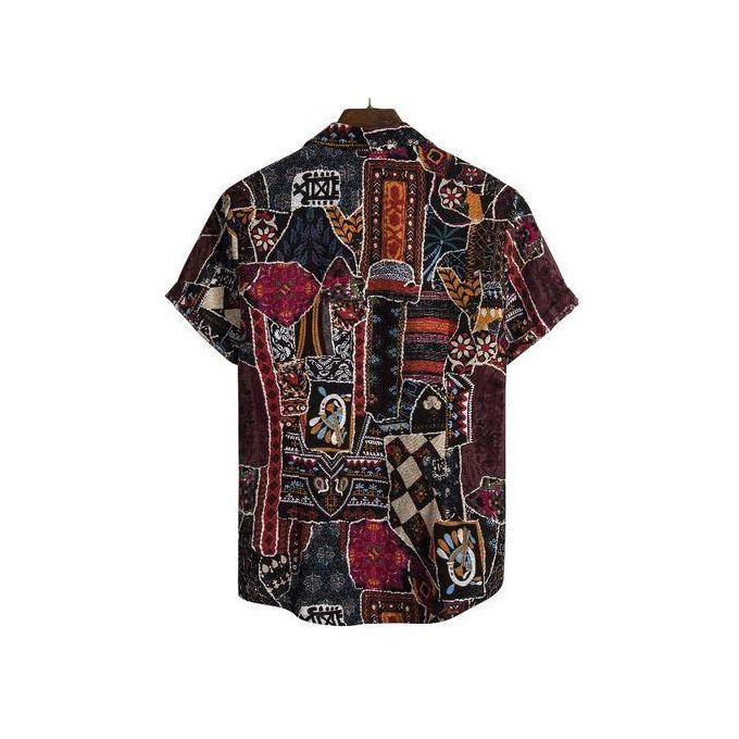 Mens Vintage Graffiti Short Sleeve Button-Down Hawaii Beach Shirt