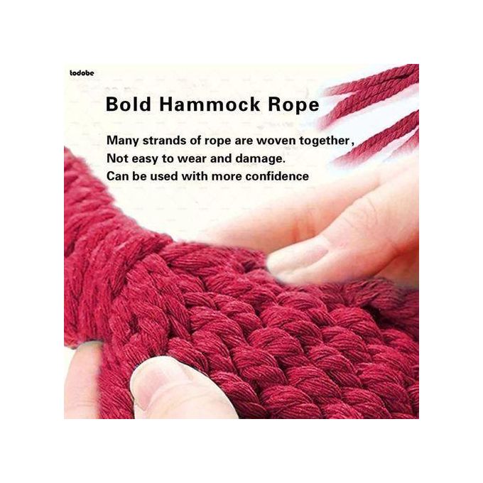 The rope joint is specially weaved according to physics rules in order every string stand the same weight and the hammock is strong enough