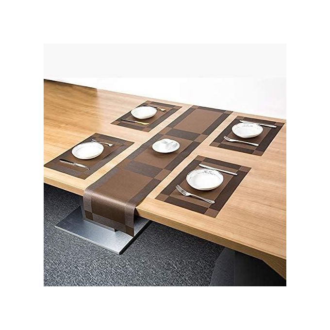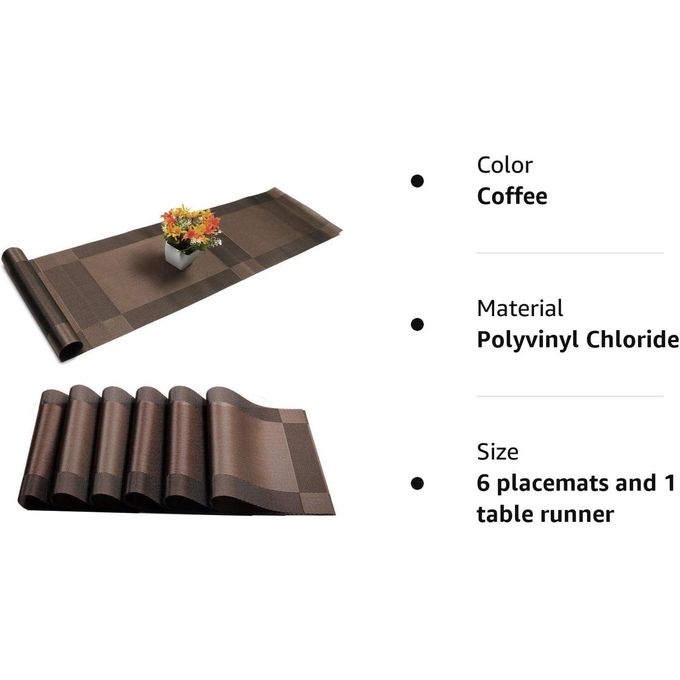Placemats Set of 6 + 1 Table Runner, Stain Resistant Washable PVC Table Mats Non-Slip Washable Coffee Mats,Crossweave Woven Vinyl Heat Resistant Kitchen Tablemats for Dining…