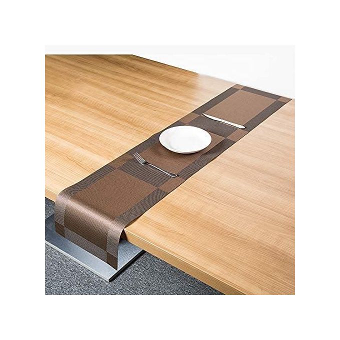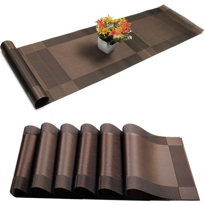 - Placemats Size :18″X12″(45cmX30cm),table runner size: 70.86*12 inch(180x30cm). Composition: 70% PVC, 30% polyester