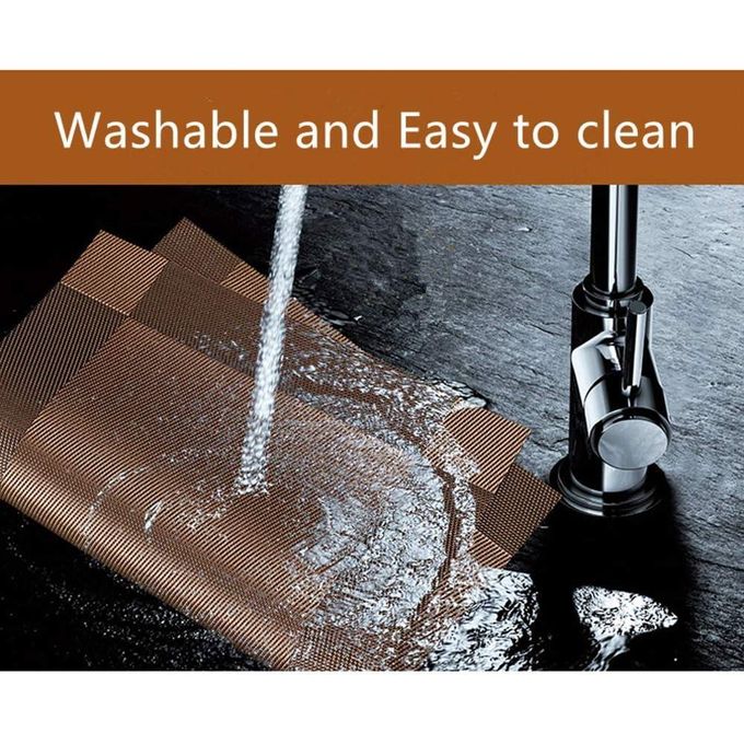 - Simple, but exquisite design, Eco-friendly PVC materials. Great colors, Prefect additions for your dinner table. Protect your table from scratches and stains,liquid can go through placemats,clean it when finished.