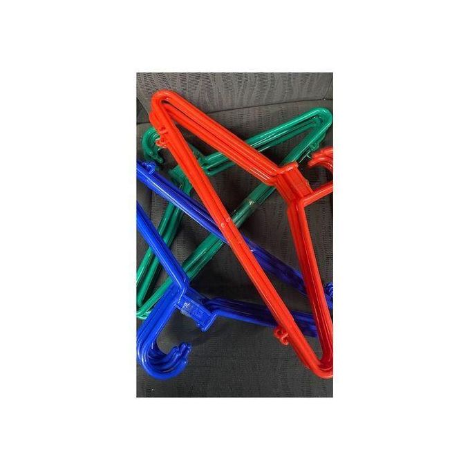 Plastic normal hangers available. These hangers are strong and durable and can hang most kinds of clothing including shirts, blouses, light coats, sweaters, trouses and many more. Each hanger contains a hook for hanging thin strapped styles of dress and do not make clothes slide. They are designed to fit well in any closet and allow the clothes to flow down well without creasing. They come in a set of 12pcs i.e. dozen; and a packet contains 1 dozens, meaning 12 hangers. Order these marvelous hangers online from our store through Jumia and have them delivered to your doorstep. They come in various colours mostly :- brown or red, blue, green, black, etc.