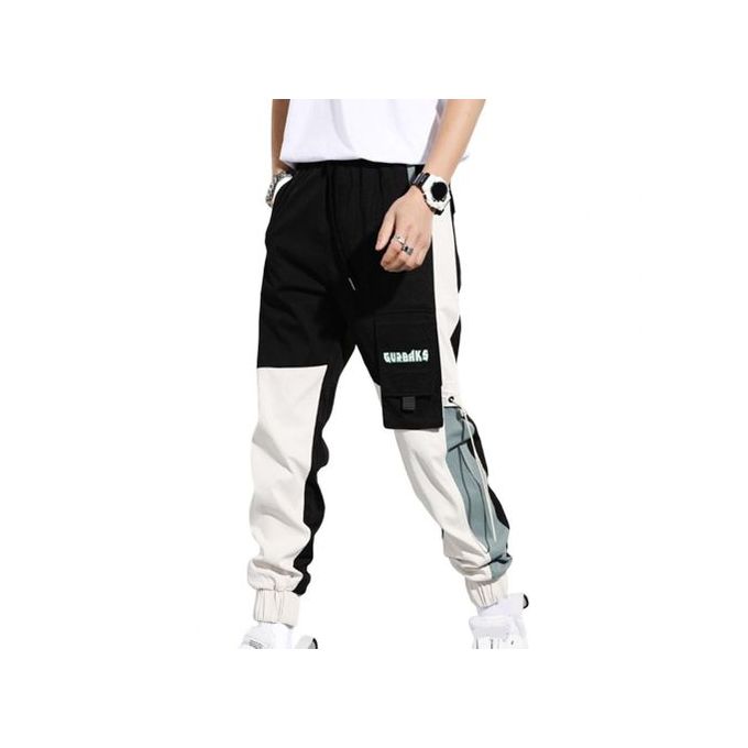 Taking ribbon decoration and color block design, this pants is very creative, fashionable and popular, it allows you to look more handsome and cool.