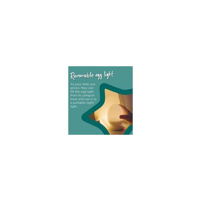 Your night-time friend that lights the way! This friendly penguin looks super cute in your little one’s bedroom giving a gentle dimmable light that’s perfect to soothe them in the night or for bedtime stories but not too bright that it will disturb their sleep. The nursery night light promotes independent sleep as it helps to reassure children and encourage them to settle back to sleep after they wake during the night. This clever penguin is also portable! Super soft, lightweight and perfectly sized for little hands, the egg lights up when lifted off the penguin base. From 18 months on wards, your little one can pick up the removable egg light and use it to light the way to the bathroom, find their favorite toy or to read under the covers. This clever penguin has got your back when it comes to night-time parenting duties – Turn up the light for late-night nappy changes or dim it to settle your baby back to sleep. His gentle glow is enough for you to see what you’re doing but won’t unsettle anyone’s sleep. The penguin night light is powered by a 200cm mains power USB-cable meaning no hunting around for batteries. The portable egg light recharges on its penguin base throughout the day and lasts up to 10 hours once fully charged.